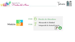 En esta clase damos continuidad al proceso de sanación de la herida de abandono, poniendo en práctica ejercicios que nos ayudan a mirar con honestidad nuestras carencias emocionales, a reconciliarnos con la soledad y a recuperar el vínculo con nuestra autosuficiencia amorosa. La propuesta de esta clase es reconectar con tu presencia, esa que no necesita ser validada desde fuera, porque sabe que es valiosa, digna y completa.