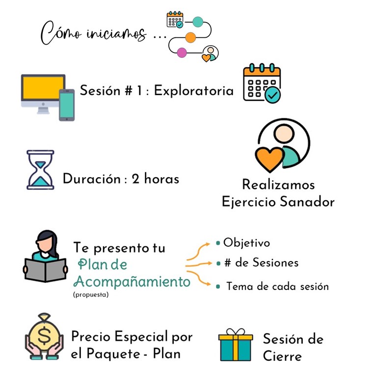 ✨Coordinamos una Sesión Exploratoria. Es un espacio de 2 horas donde revisamos juntas las situaciones que deseas abordar y lo que hoy te inquieta. ✨A partir de allí, diseño para ti un Plan de Acompañamiento Personalizado, que incluye: