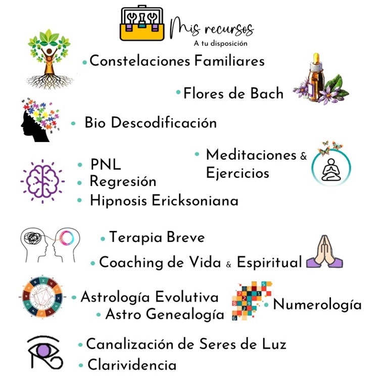 ✨En el Plan de Acompañamiento personalizado, elaboro una propuesta adaptada a tus necesidades, tiempos y objetivos. Puedo apoyarme en recursos como Constelaciones Familiares, Bio Descodificación, Terapia Breve, Hipnosis, Flores de Bach, Astrología, Numerología, Coaching Espiritual, entre muchos otros.